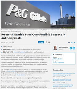 Procter & Gamble Sued Over Possible Benzene In Antiperspirants |