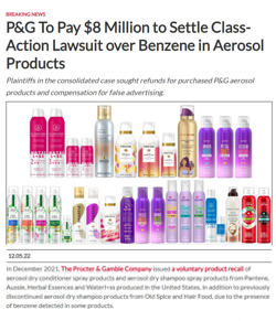 P&G To Pay $8 Million To Settle Class-Action Lawsuit Over Benzene In Aerosol Products |
